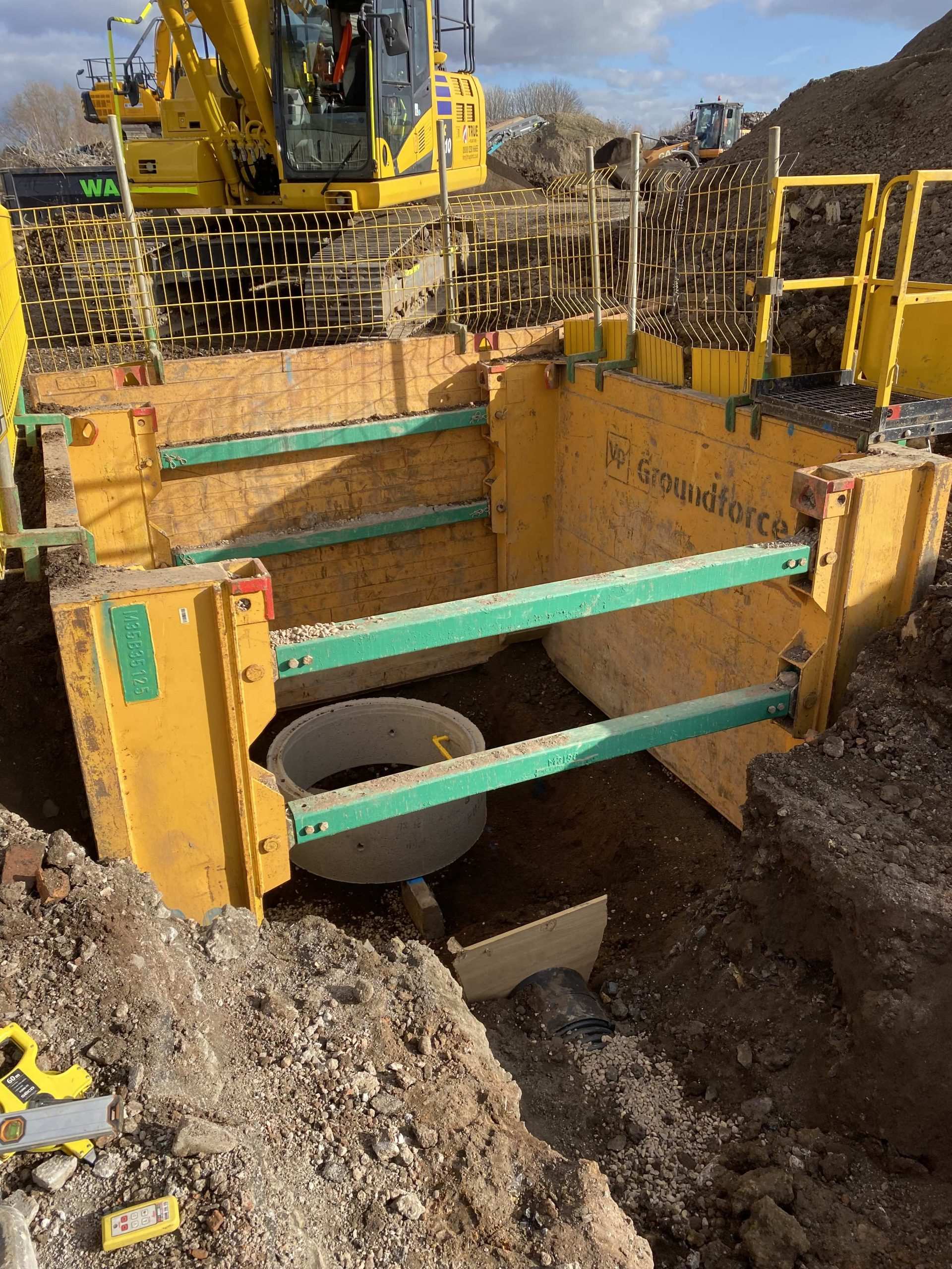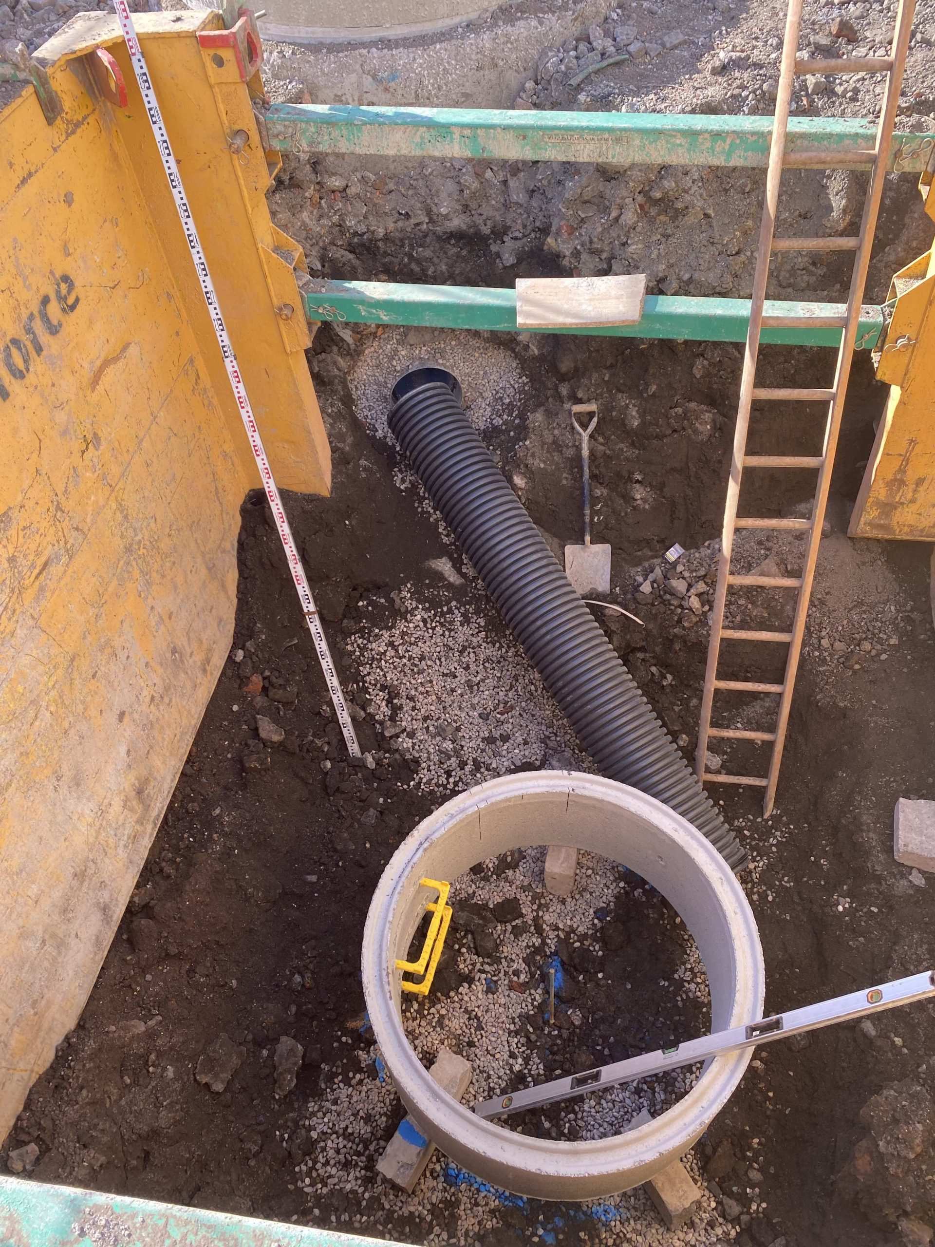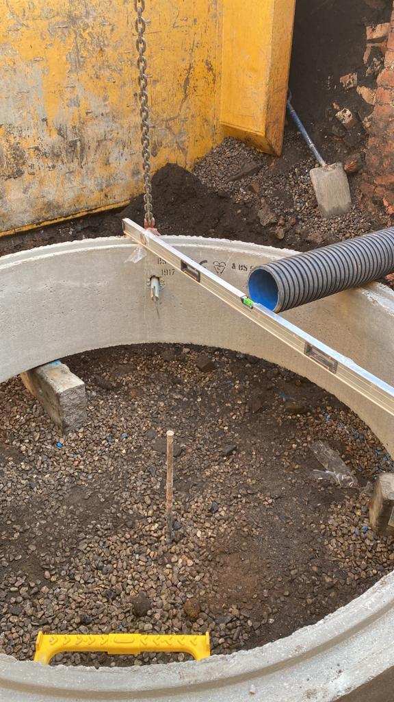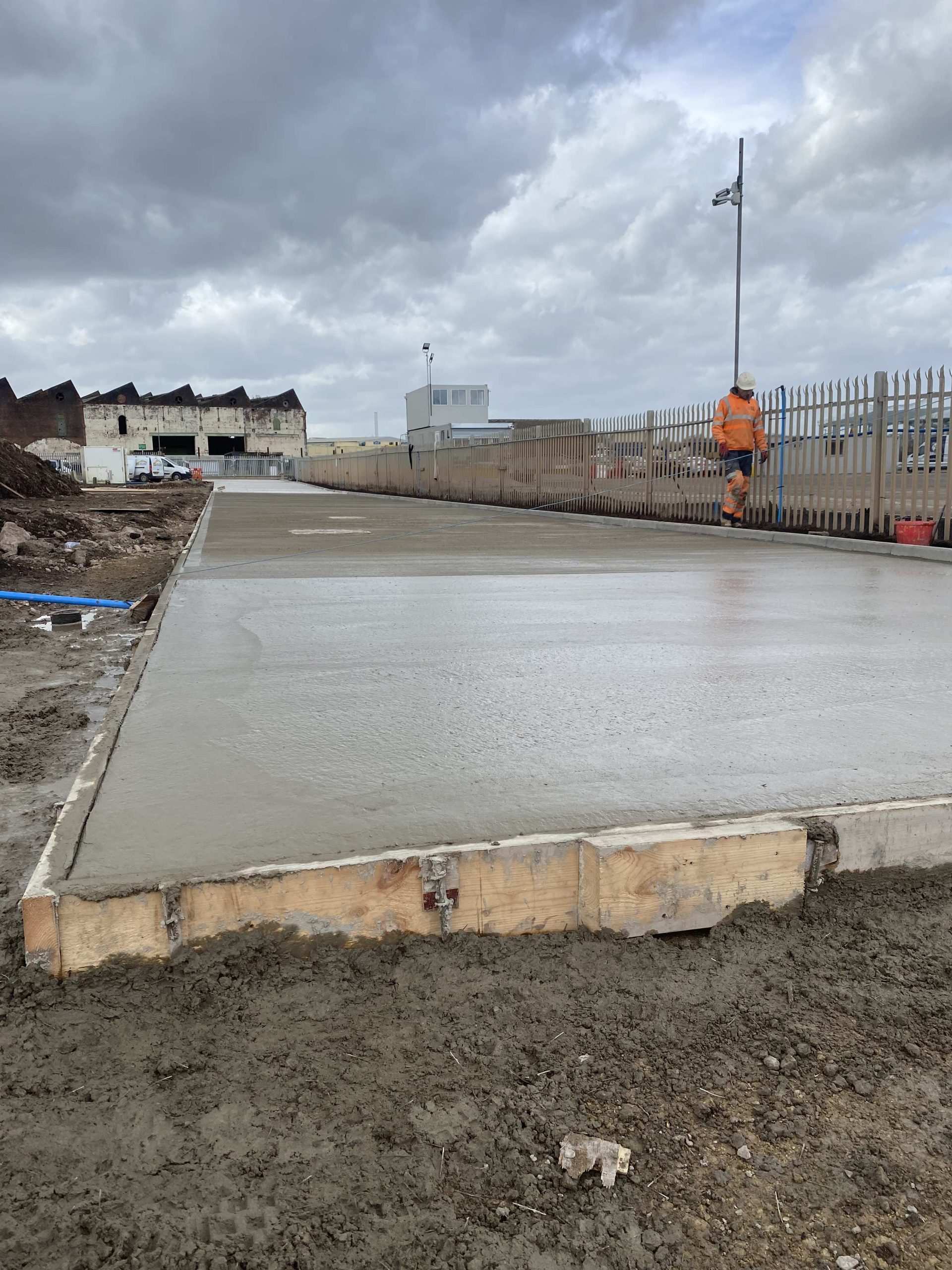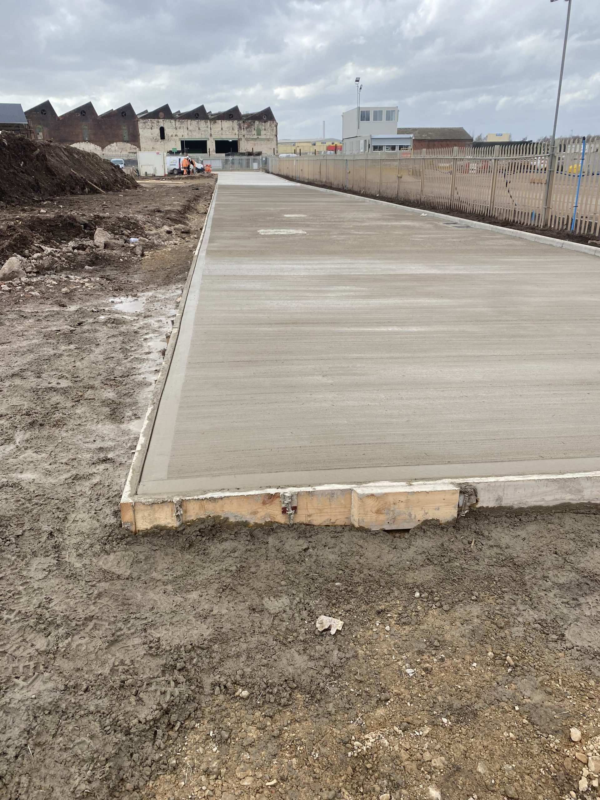 In February of 2023 RSS were tasked with installing a new concrete Haul road from the entrance of Aggrecom (A local aggregate contractor) to their material storage area at the opposite end of their site. The sites existing entrance required closure for the duration of the works and access was granted through the neighbouring company’s site. Due to this measure, it was imperative that the works were carried out on the tightest possible programme. Works consisted of a reduce level dig due to the existing road being 600mm higher than the proposed, connection into the existing culvert, new surface water drainage including gullies, attenuation and flow control chambers, new kerbs and a brushed finished concrete slab.