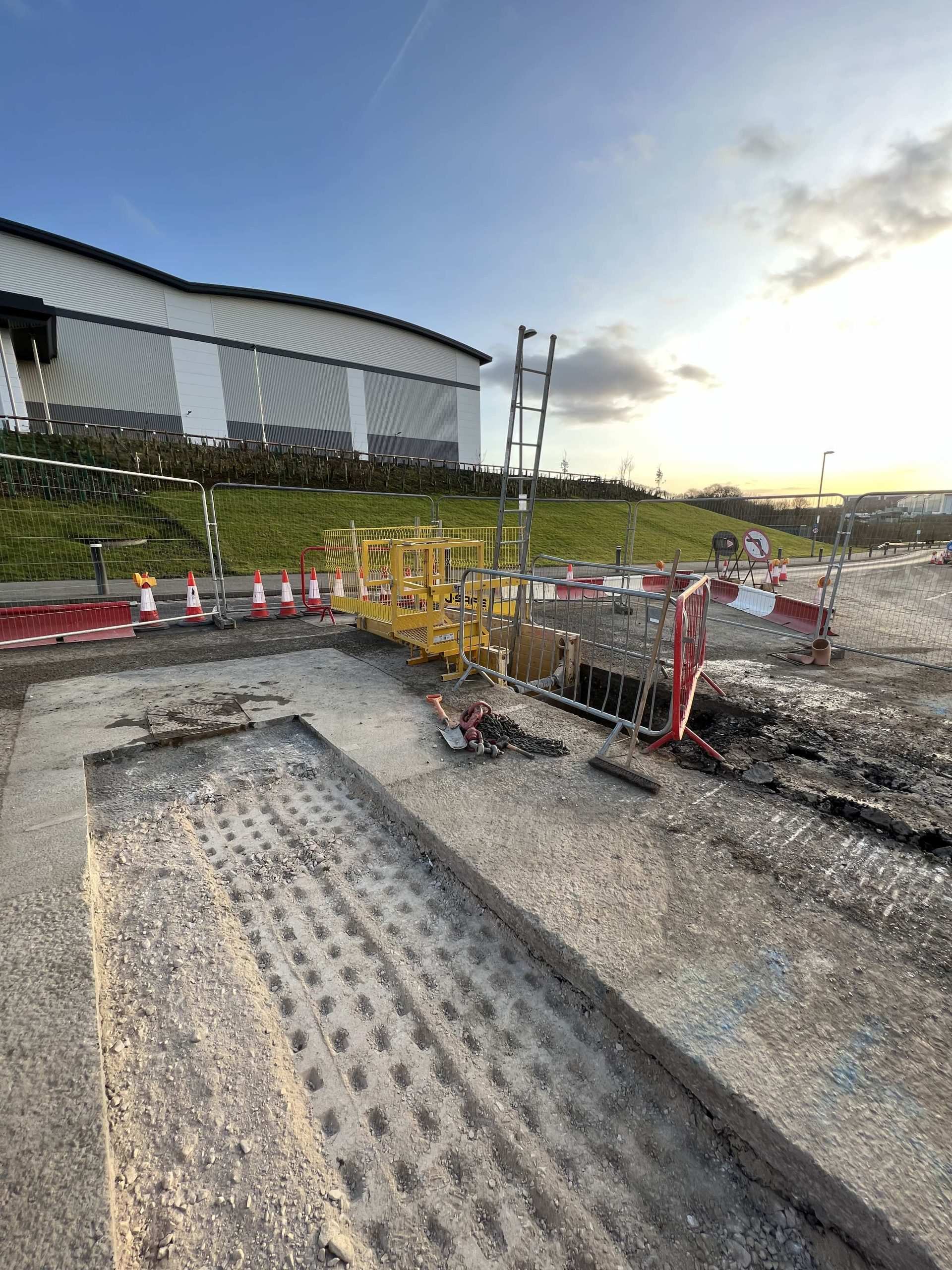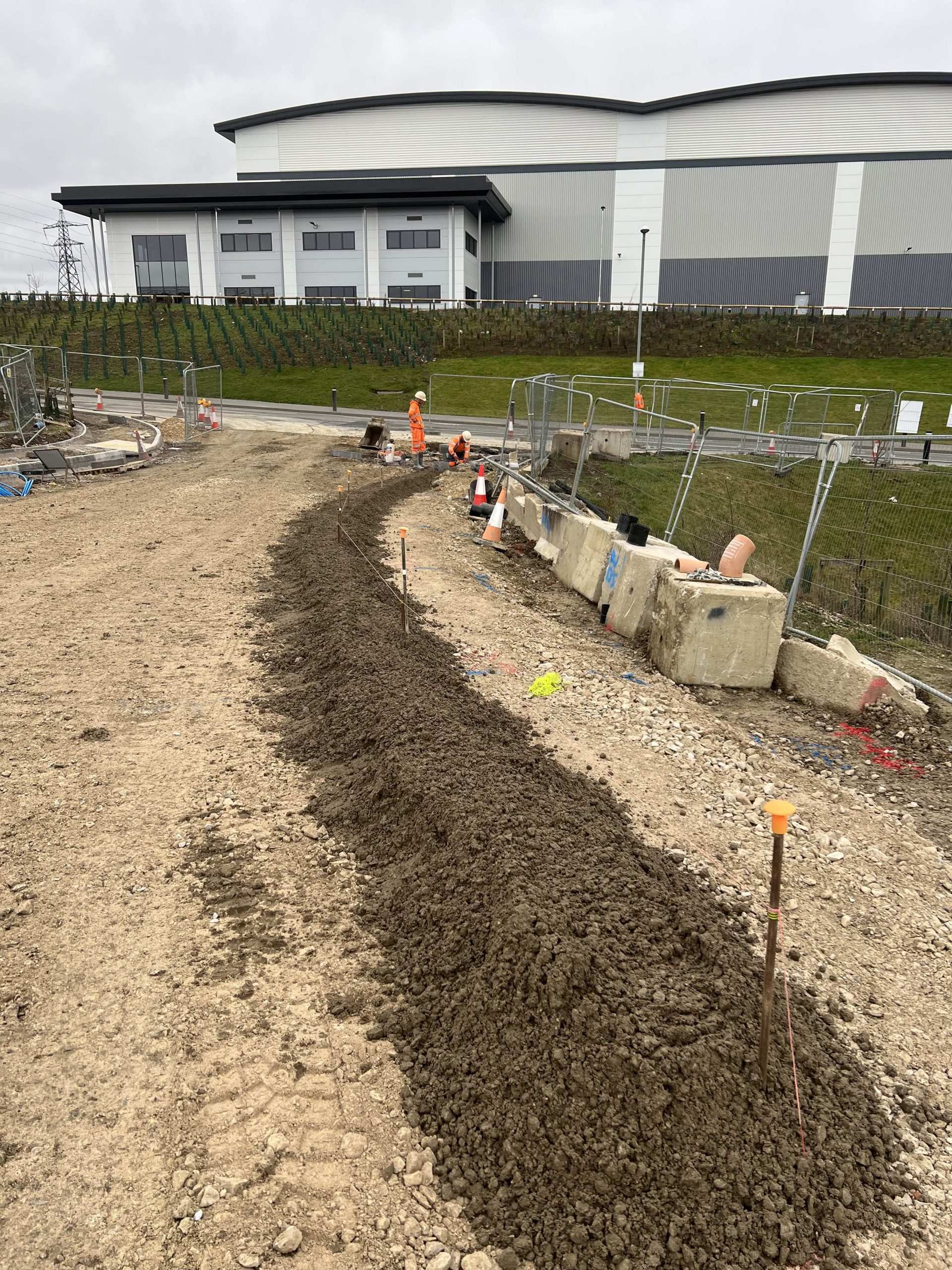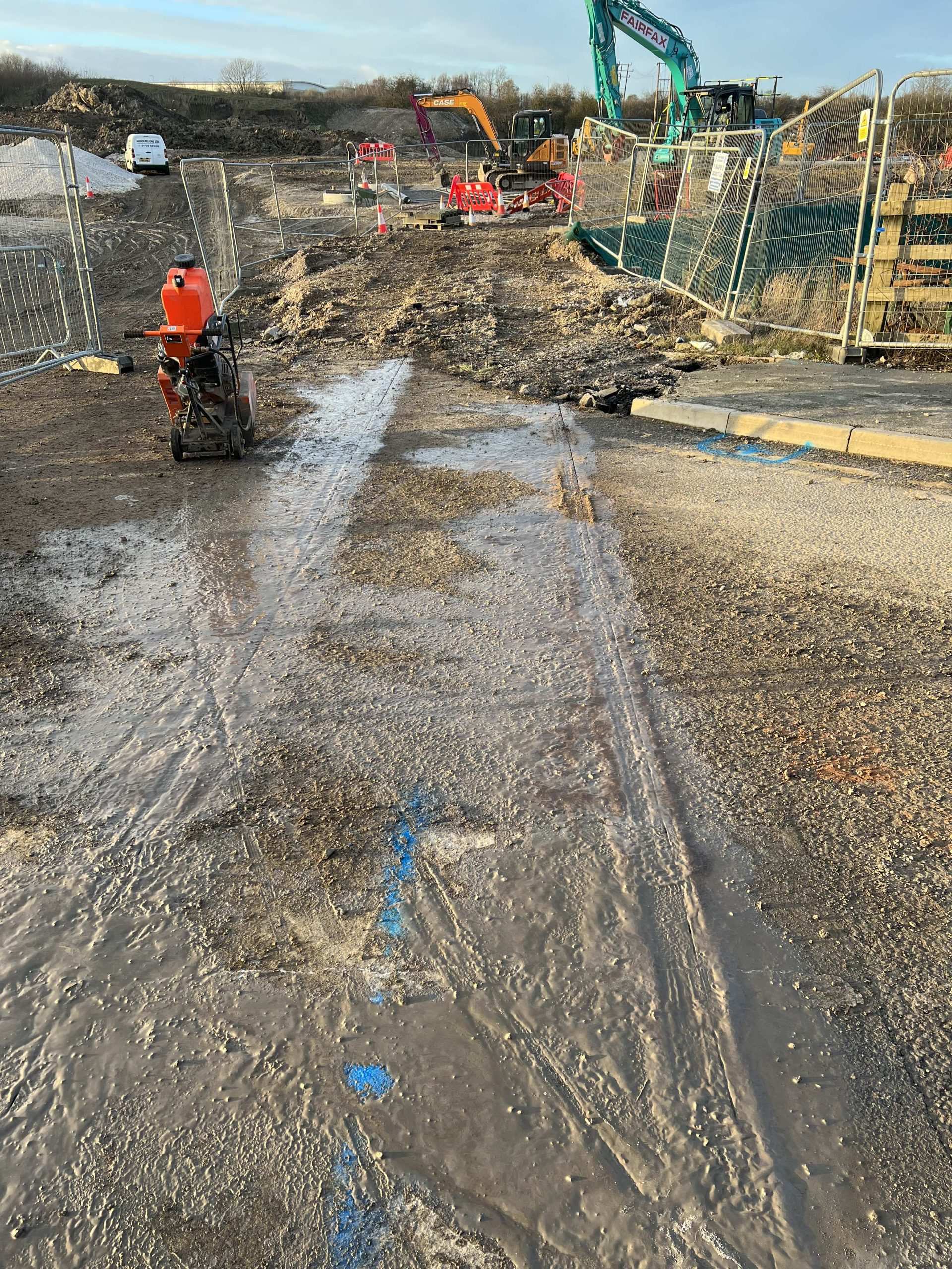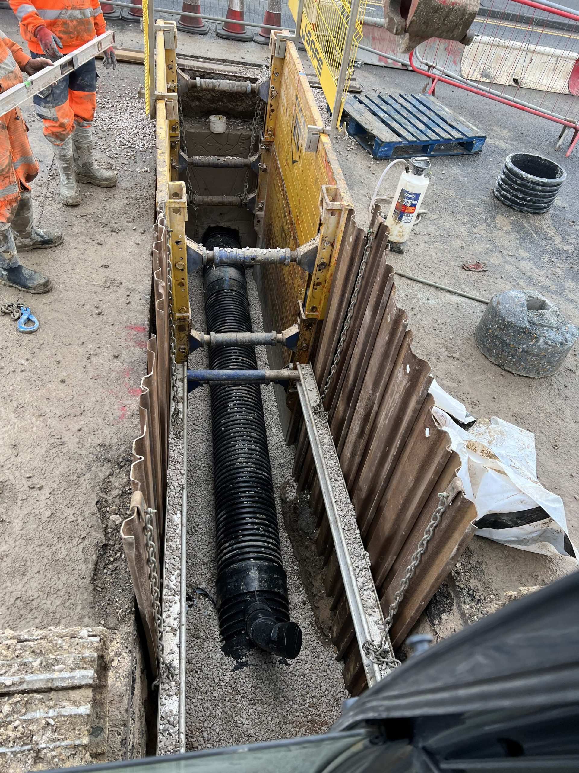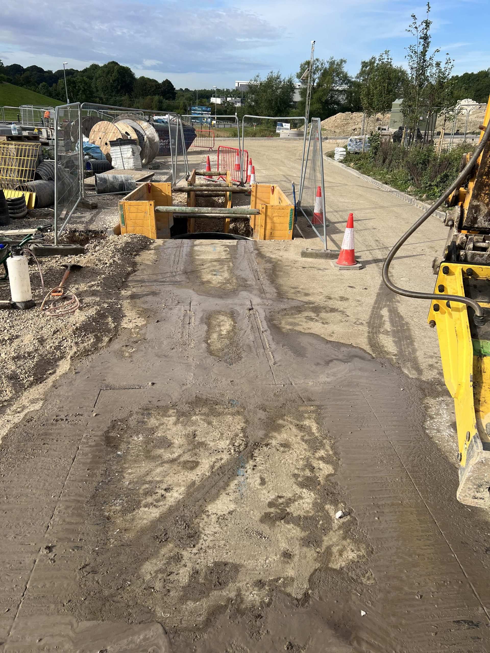 In February of 2023 we were invited to return and make the foul and surface water connections onto the Severn Trent water sewers in the existing highway. Works included installation of a new site entrance, with the priority of maintaining 24 hour access into the busy site at all times. On completion of these works we were further instructed to carry out the installation of flow control chambers, ACO kerbs and 3000m² stoning up ready for tarmac.