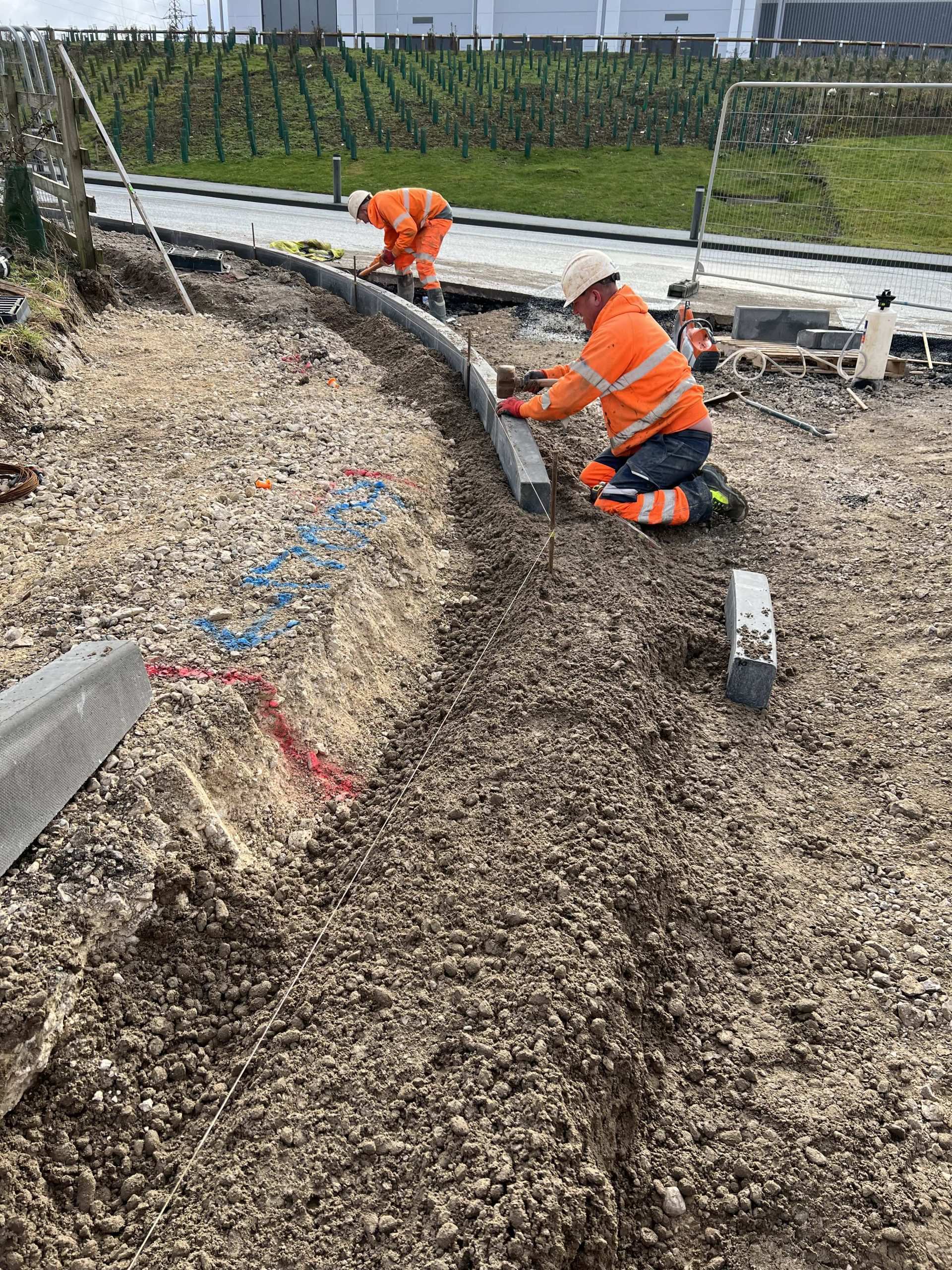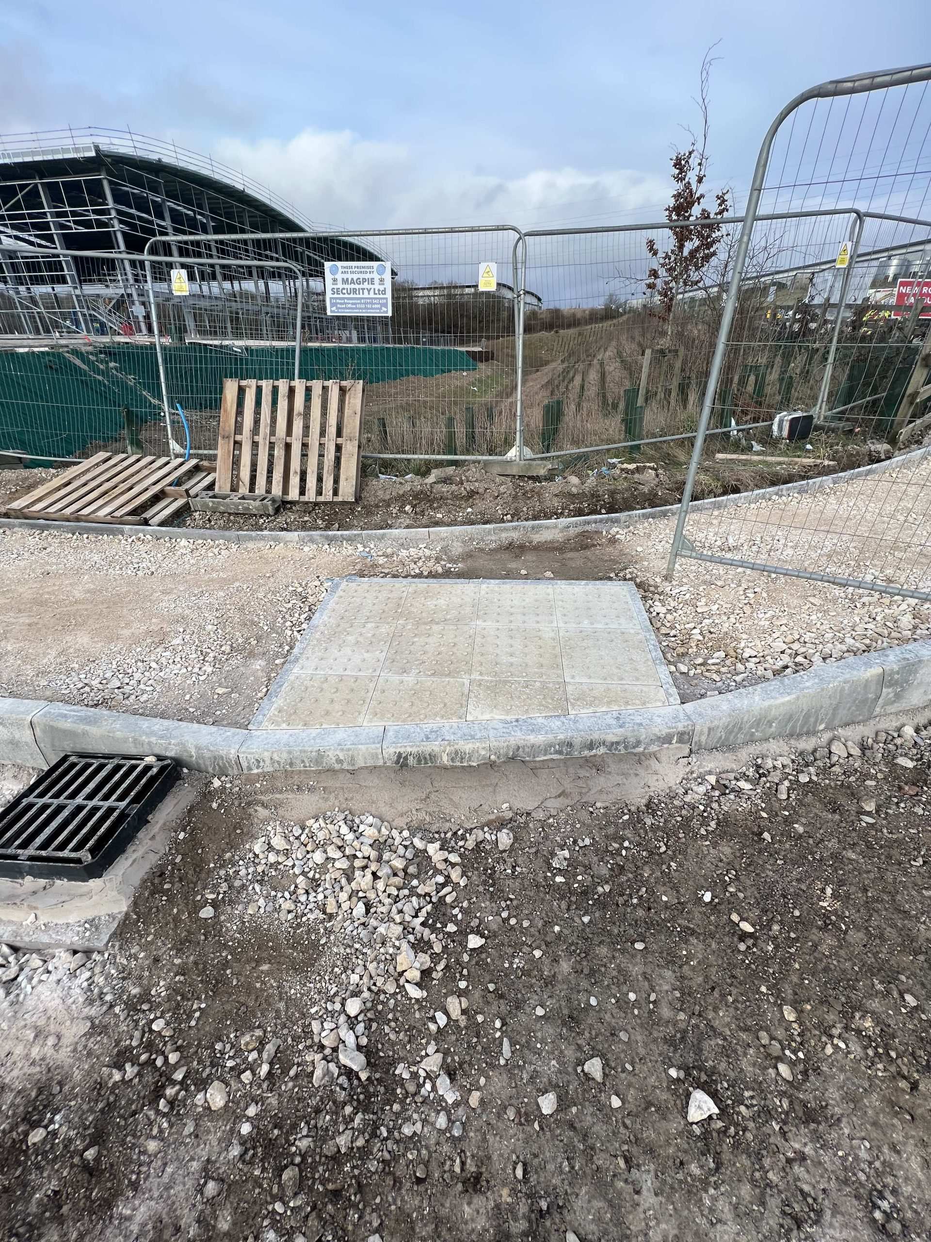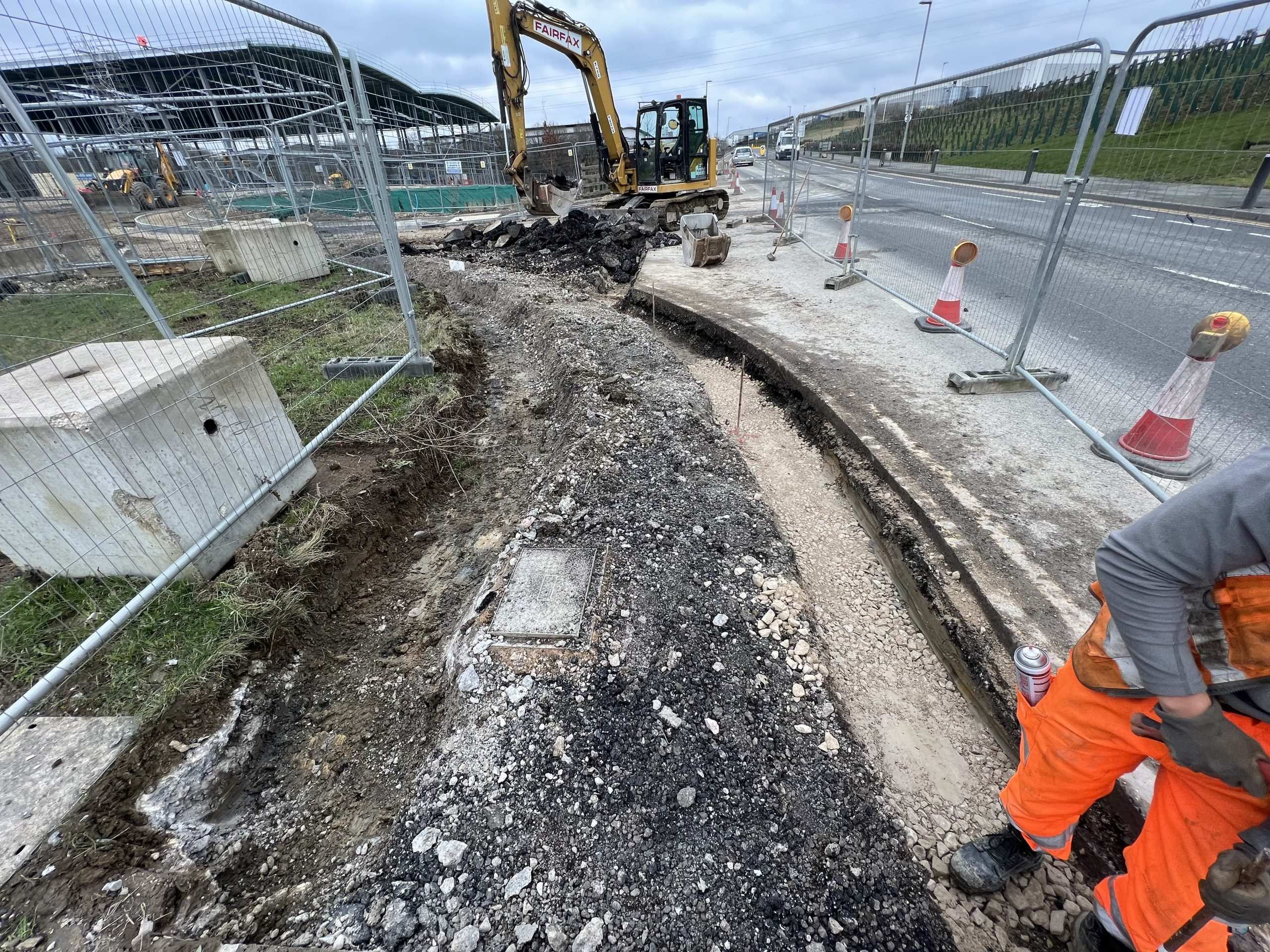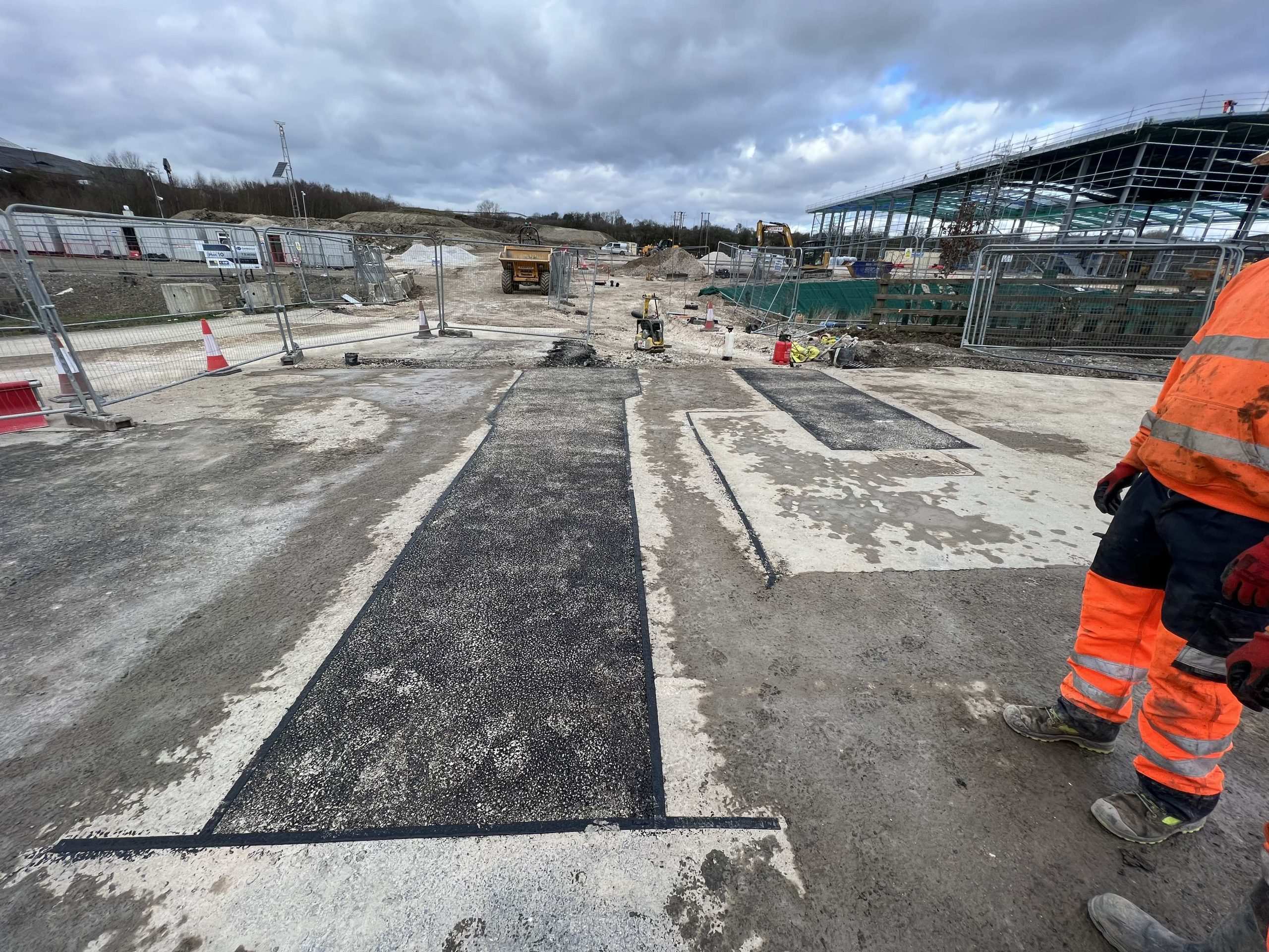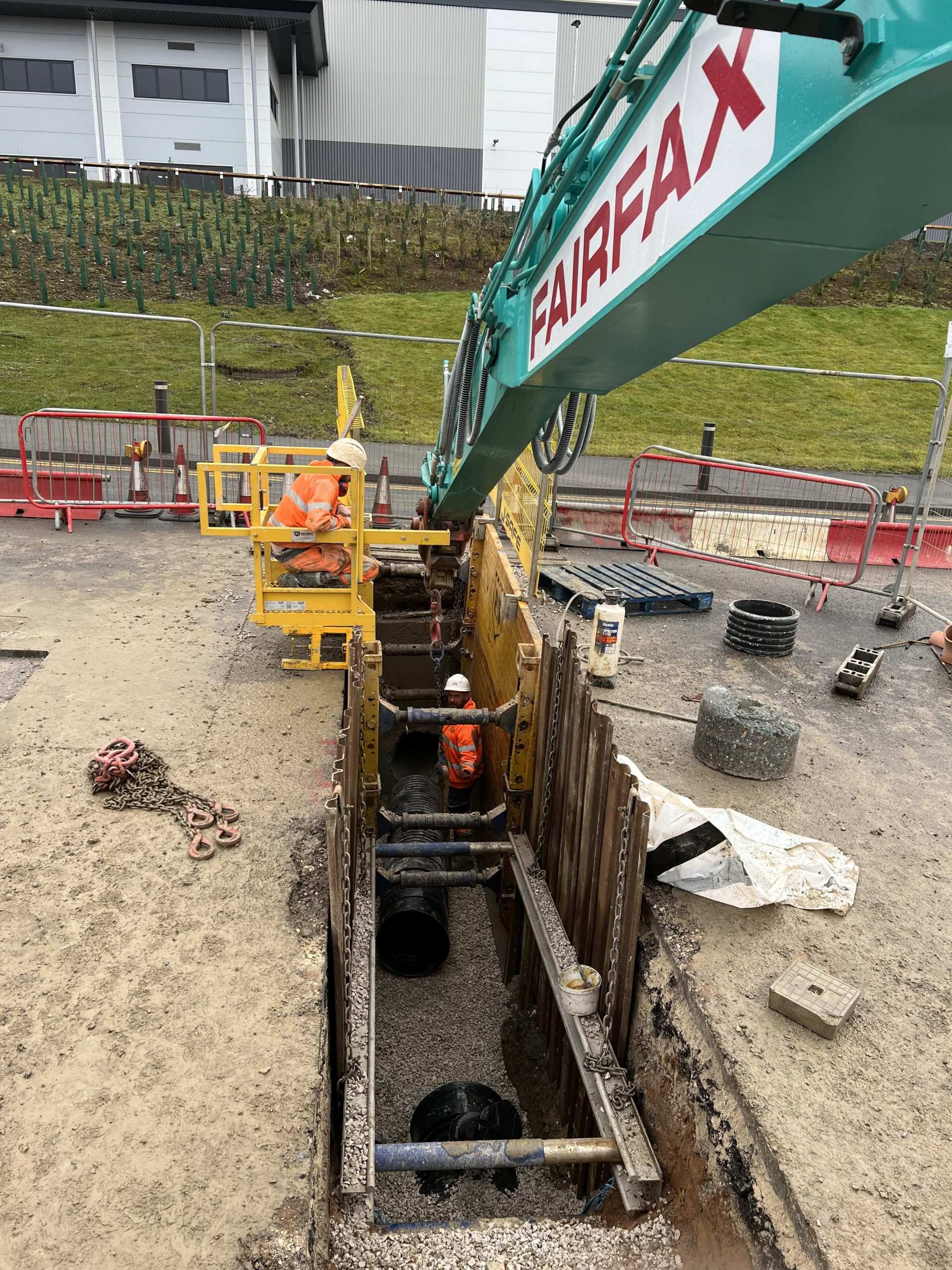 In February of 2023 we were invited to return and make the foul and surface water connections onto the Severn Trent water sewers in the existing highway. Works included installation of a new site entrance, with the priority of maintaining 24 hour access into the busy site at all times. On completion of these works we were further instructed to carry out the installation of flow control chambers, ACO kerbs and 3000m² stoning up ready for tarmac.
