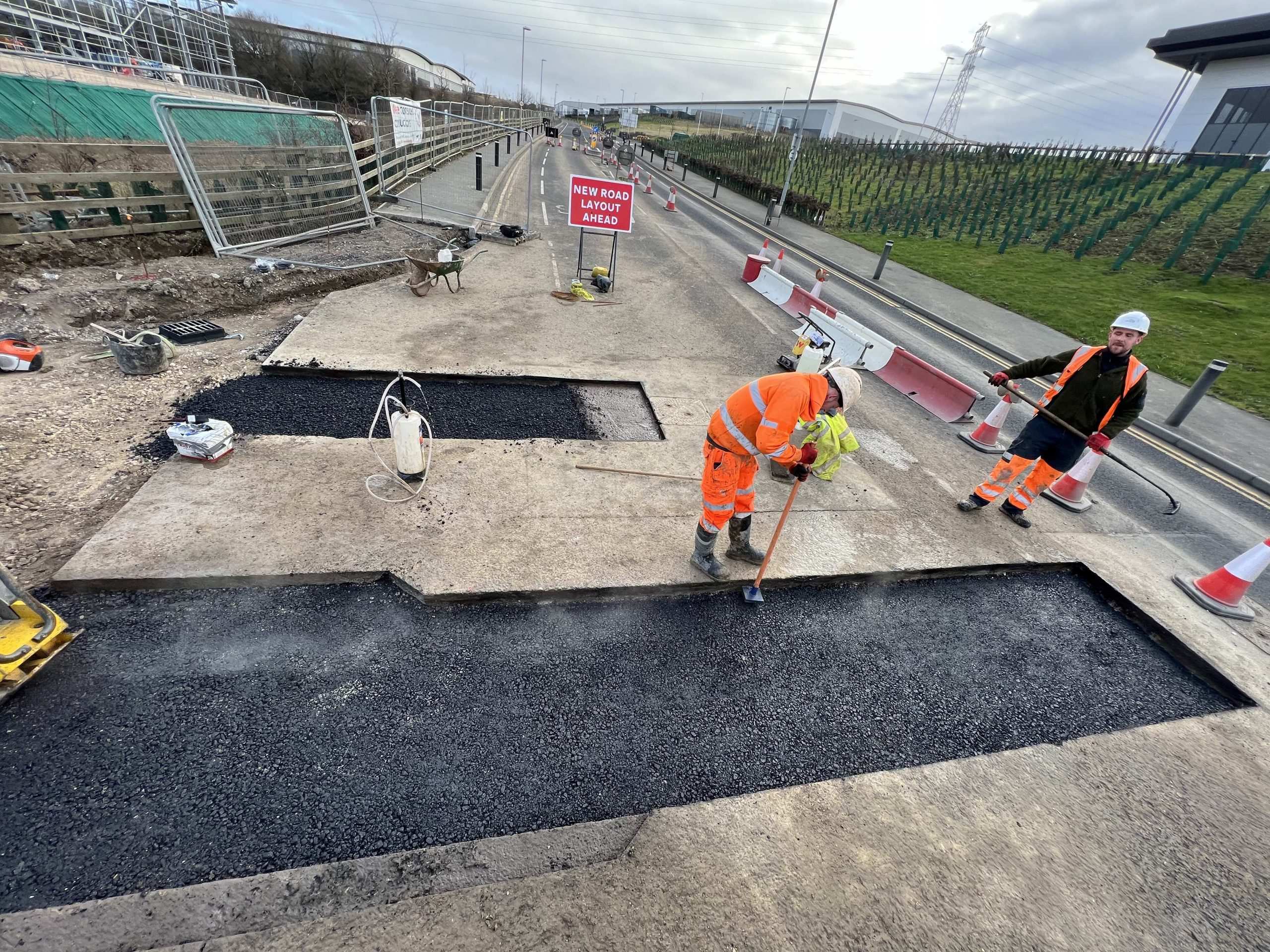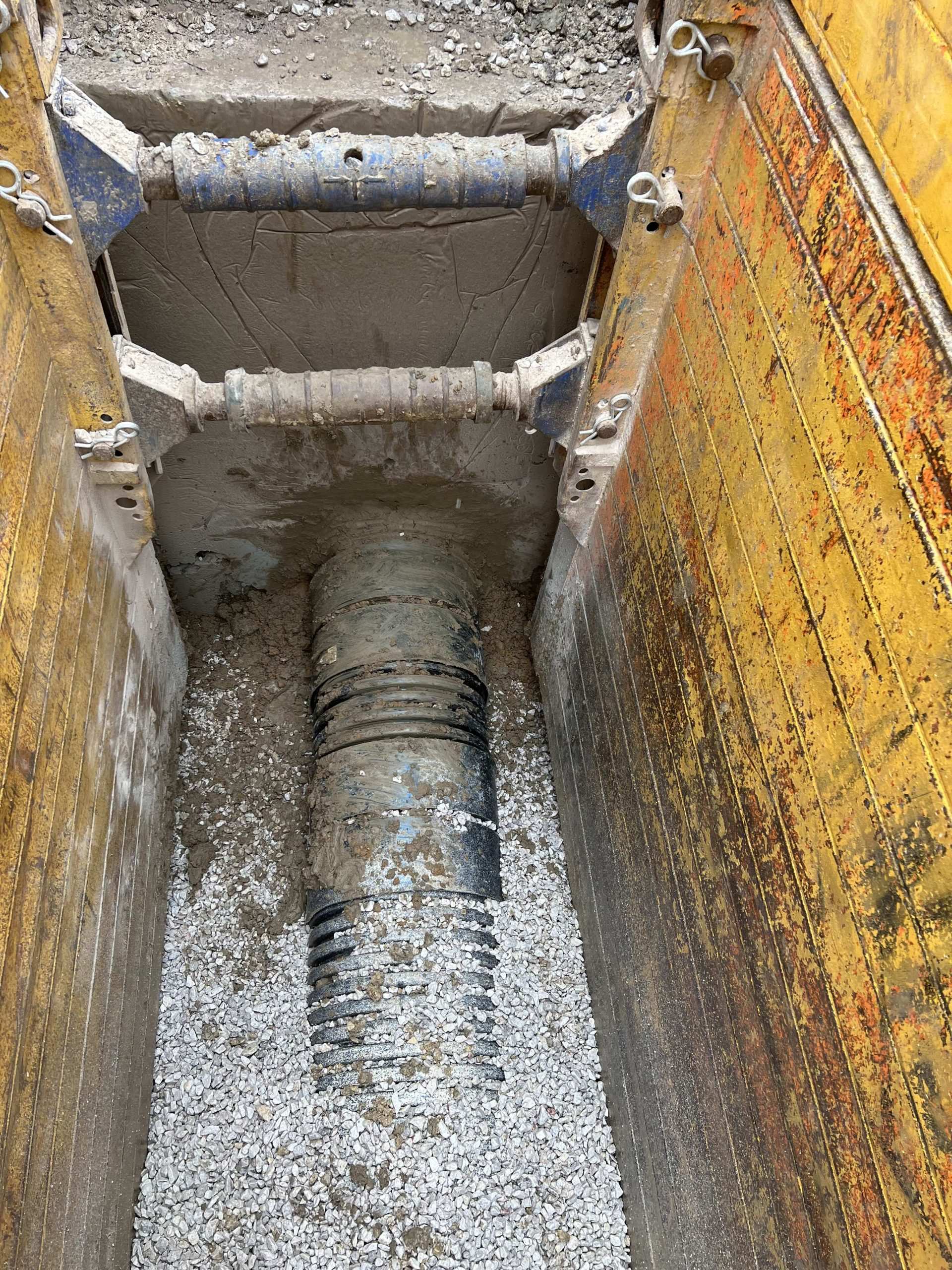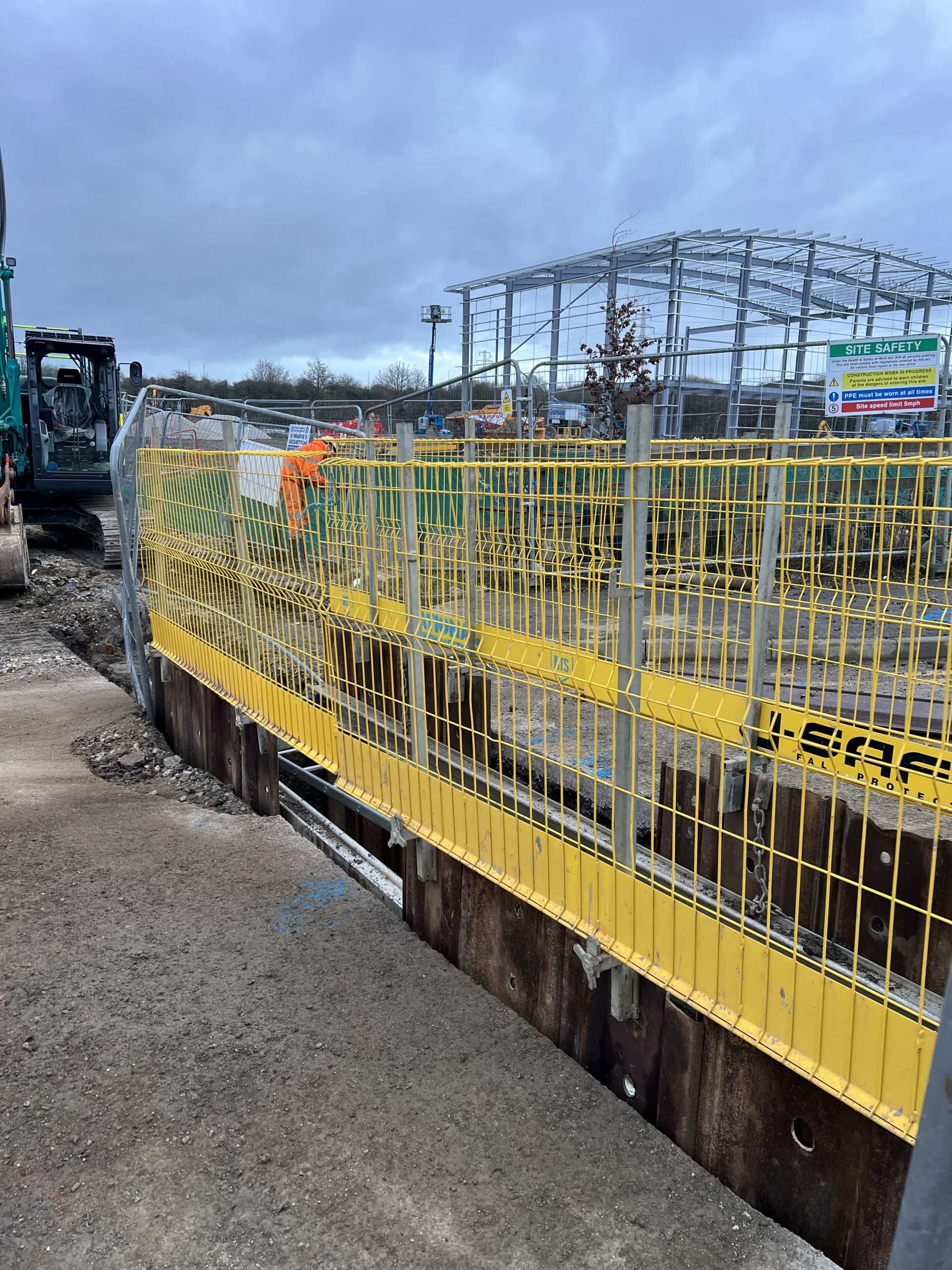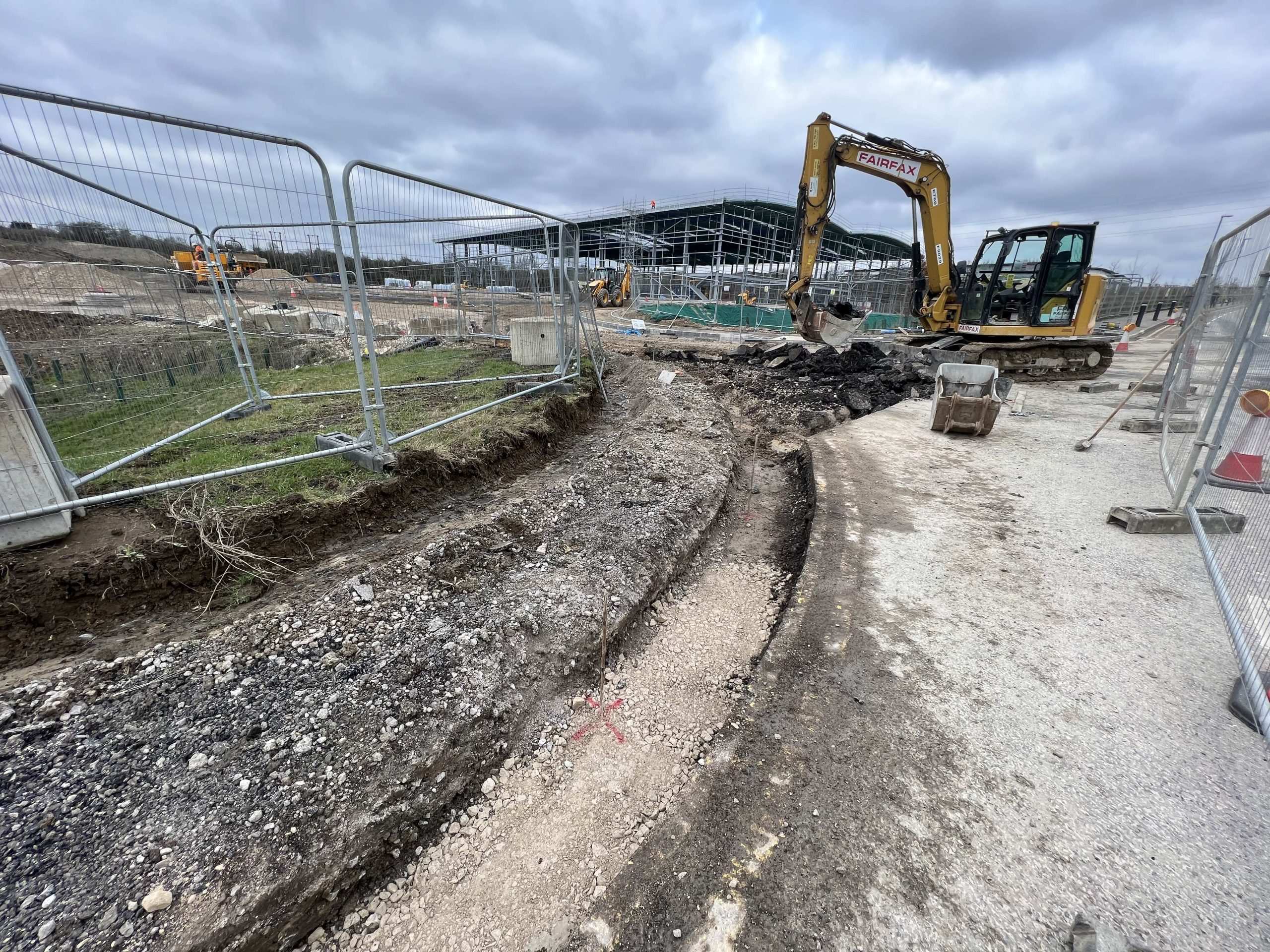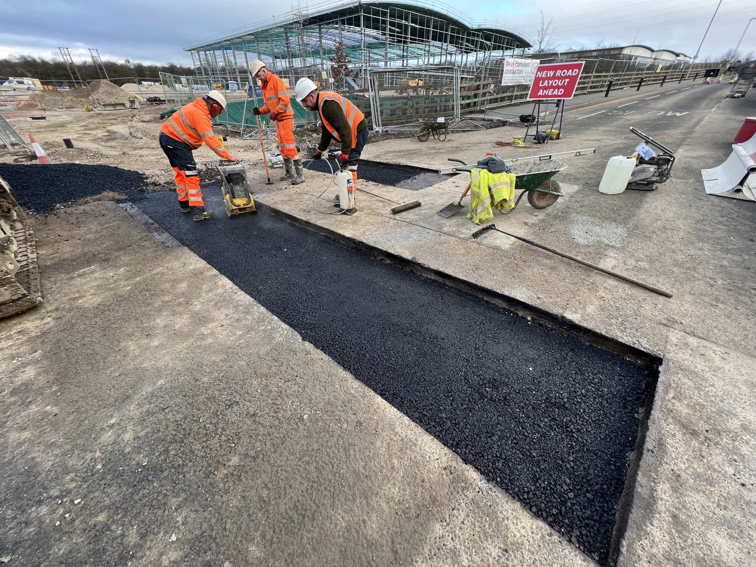 In February of 2023 we were invited to return and make the foul and surface water connections onto the Severn Trent water sewers in the existing highway. Works included installation of a new site entrance, with the priority of maintaining 24 hour access into the busy site at all times. On completion of these works we were further instructed to carry out the installation of flow control chambers, ACO kerbs and 3000m² stoning up ready for tarmac.