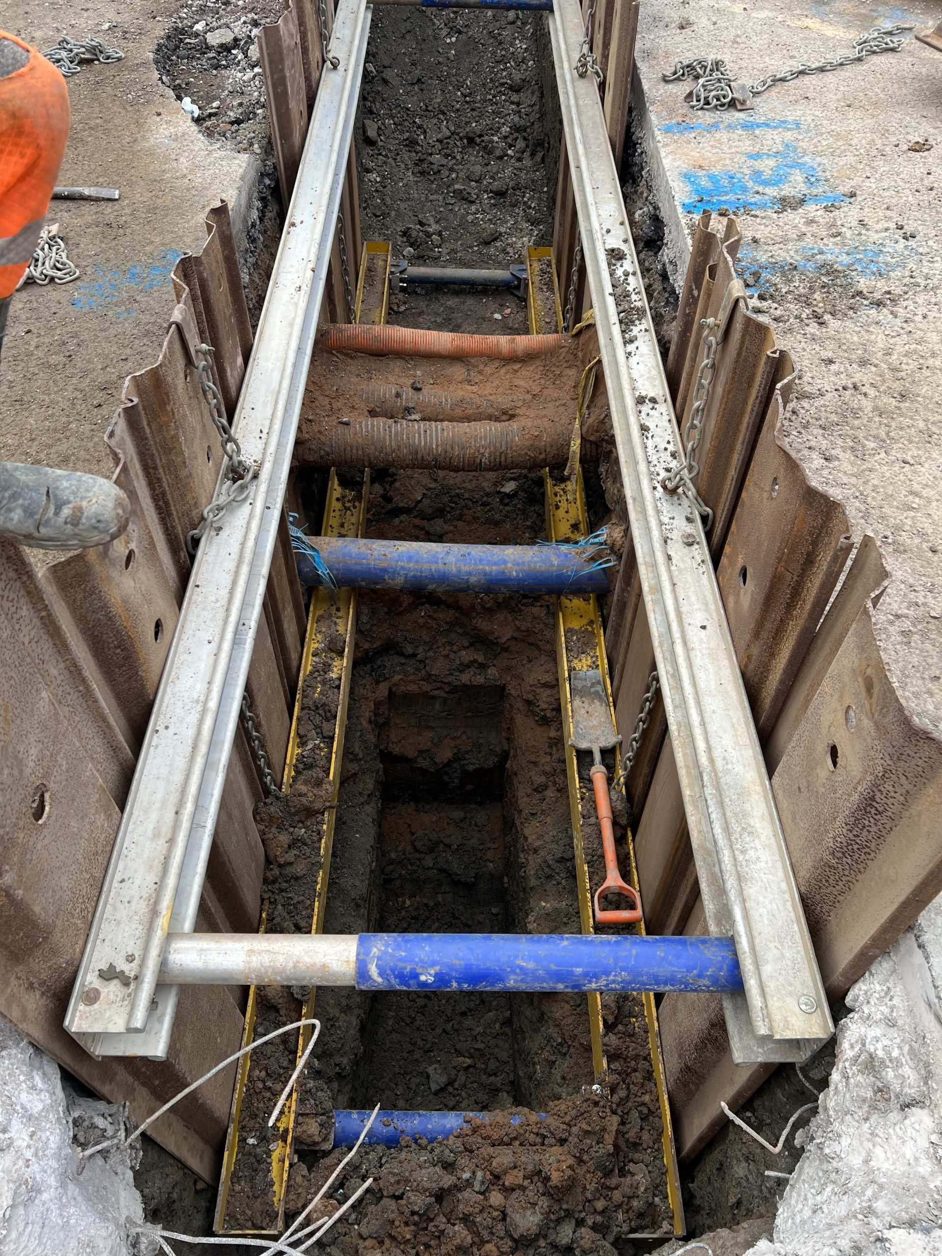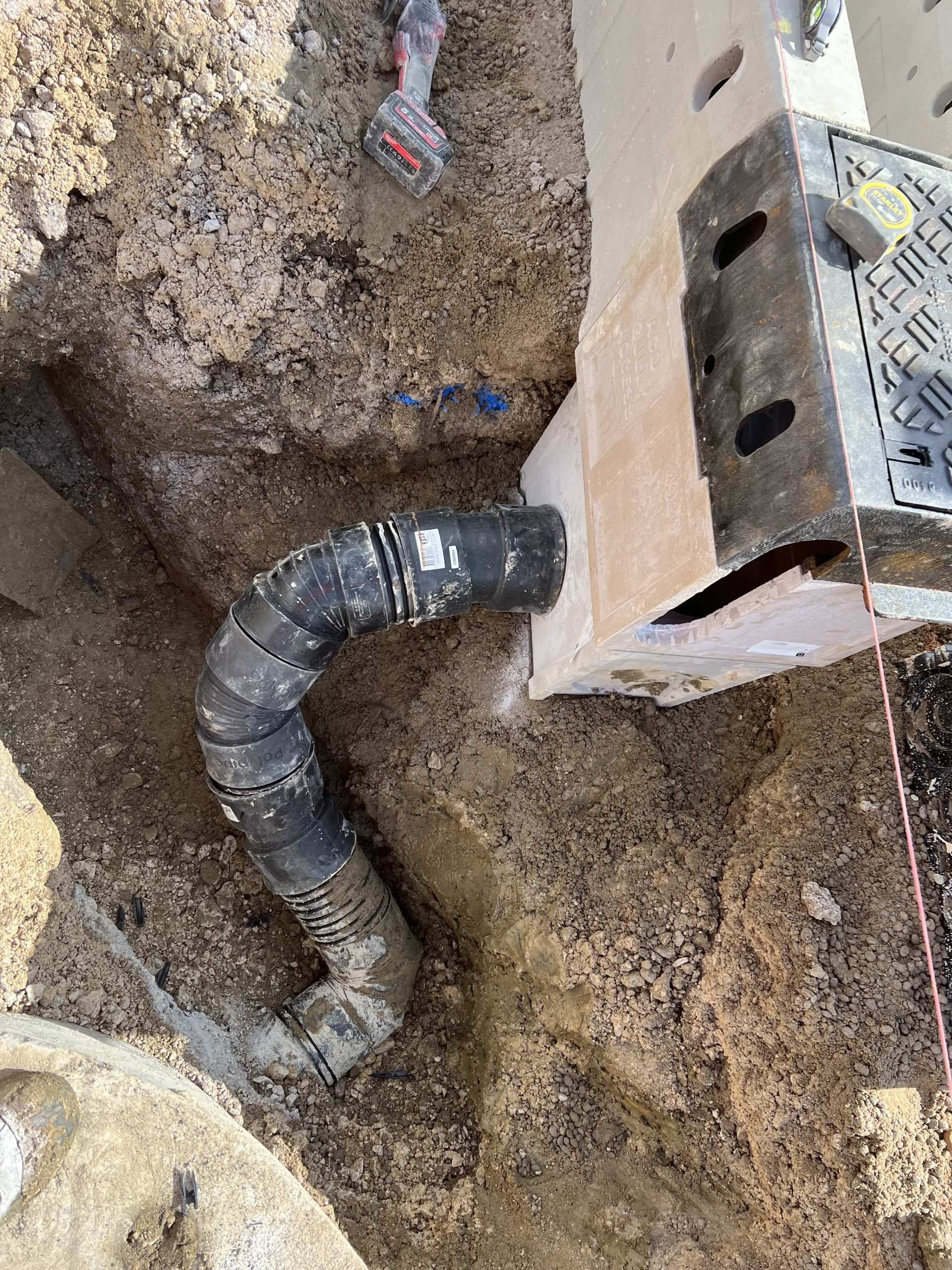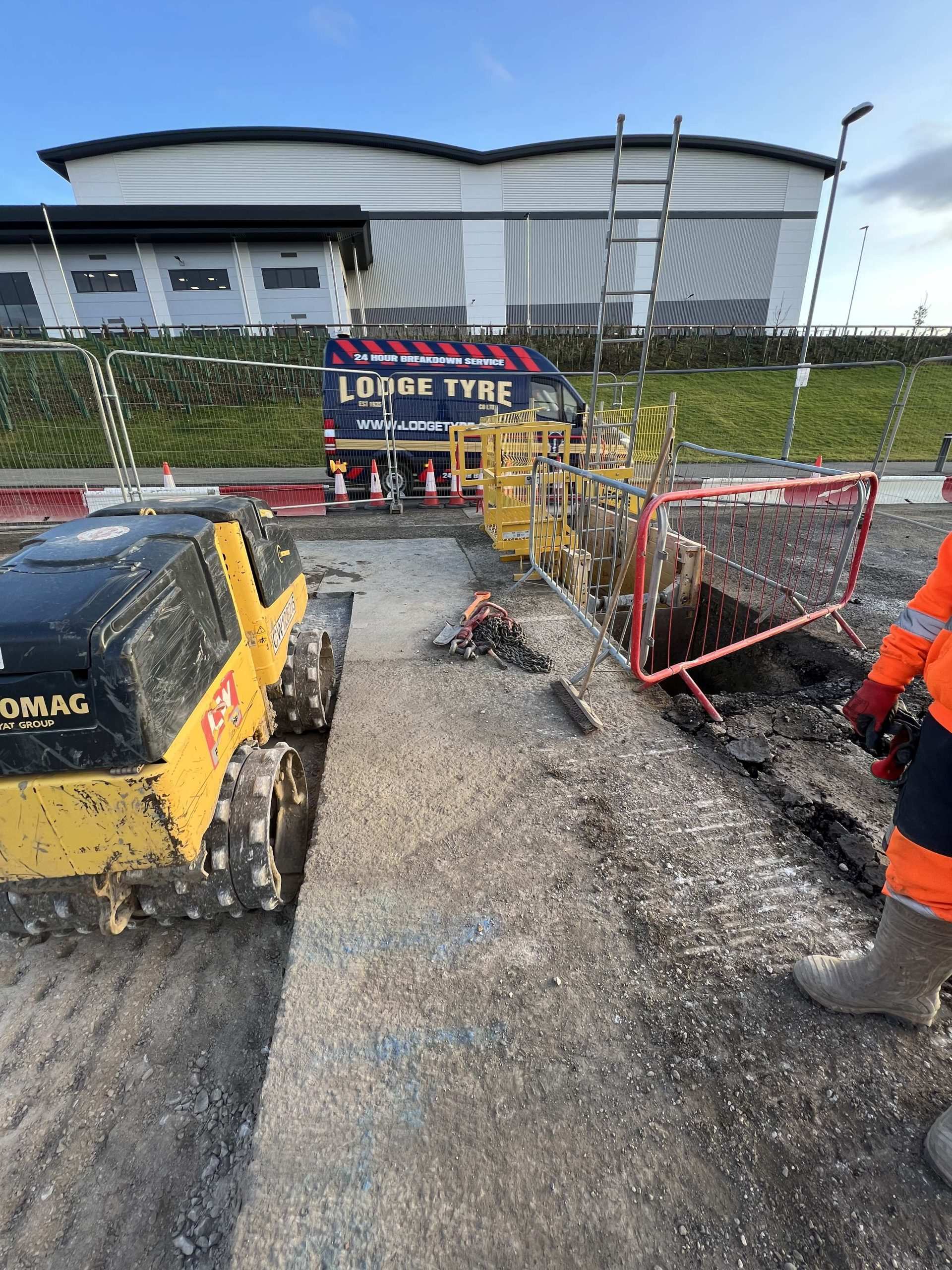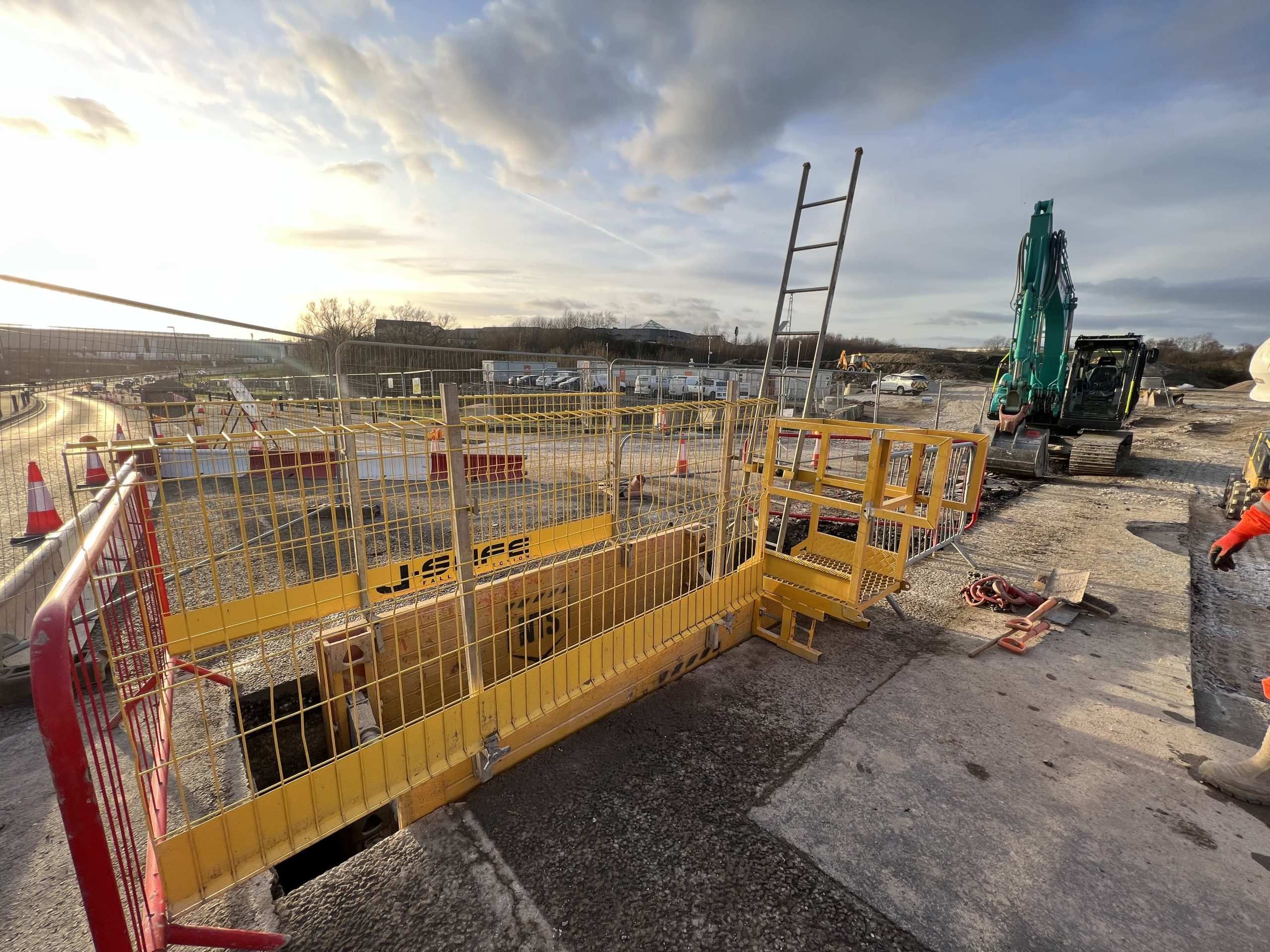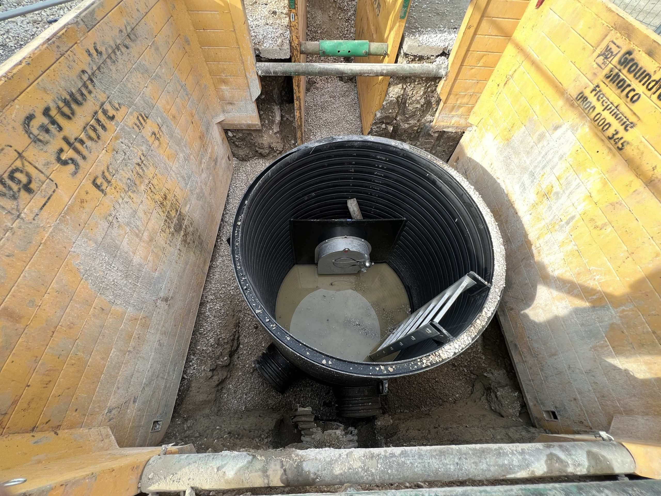 In February of 2023 we were invited to return and make the foul and surface water connections onto the Severn Trent water sewers in the existing highway. Works included installation of a new site entrance, with the priority of maintaining 24 hour access into the busy site at all times. On completion of these works we were further instructed to carry out the installation of flow control chambers, ACO kerbs and 3000m² stoning up ready for tarmac.