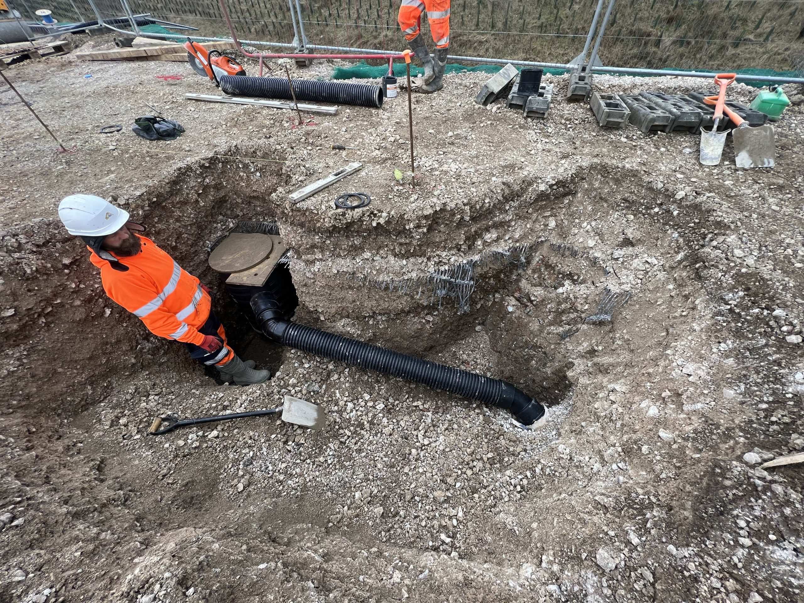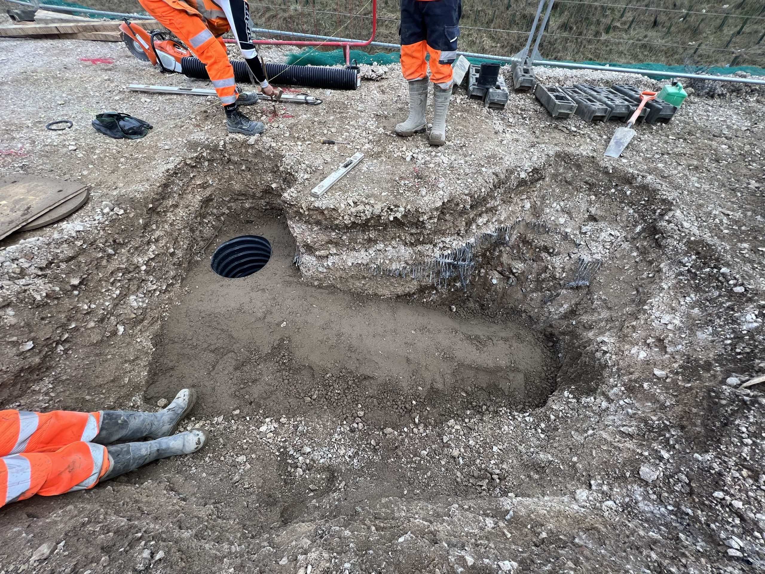 In September 2022 we were instructed to install deep drainage, catchpits and an outfall into an existing ditch onsite to enable the land drainage to be installed on what was an exceptionally challenging wet site.